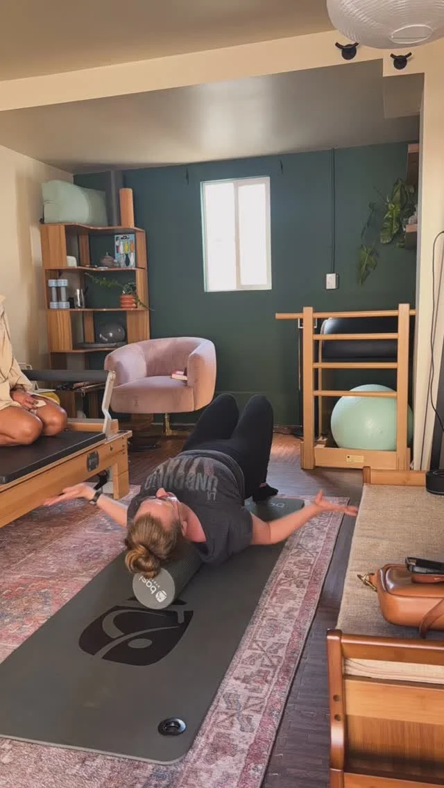At Movement by Kiko, we use a Basi reformer machine with a variety of accessories, including a sitting box and jump board. It also has a tower attachment, allowing for more versatility in exercises.